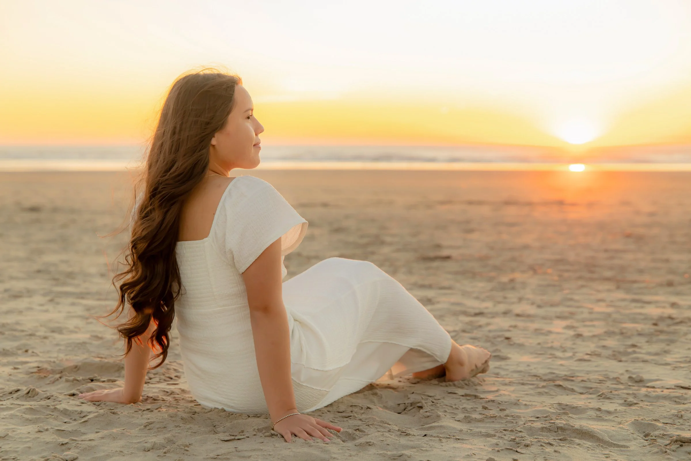 Golden hour at the coast is unlike anywhere else. The sunlight doesn’t just shine—it wraps around you. It reflects off the water, dances across the sand, and creates a soft, glowing halo that flatters every subject. We used that to our advantage, positioning shots so the light would catch just right—illuminating hair, highlighting eyes, and adding a dreamy warmth to each image.